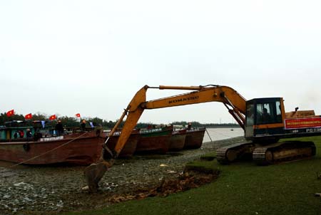Nạo vét sông Hồng khu vực huyện Nam Sách, tỉnh Hải Dương