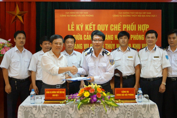 Thực hiện ý kiến chỉ đạo tại Văn bản số 1608/CHHVN-PC ngày 26/4/2014 của Cục Hàng hải Việt Nam, ngày 05/6/2014, tại Cảng vụ hàng hải Hải Phòng đã tổ chức Lễ ký kết Quy chế phối hợp giữa Cảng vụ hàng hải Hải Phòng và Cảng vụ Đường thủy nội địa Khu vực I.