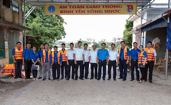 Lãnh đạo, cán bộ Cảng vụ I tặng áo phao cho người dân đi qua đò ngang khu vực Hải Phòng