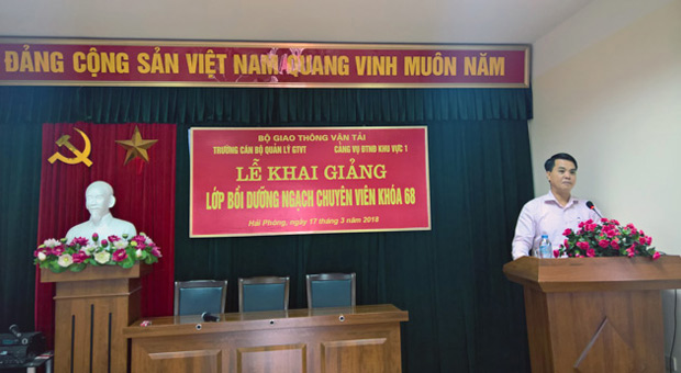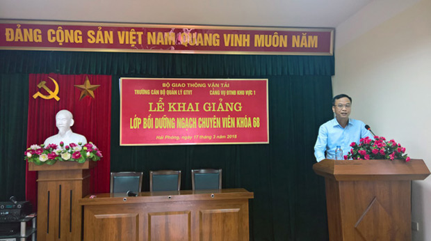 Phát biểu tại lễ khai giảng, ông Ngô Anh Tuấn Quyền Hiệu trưởng Trường Cán bộ quản lý GTVT đã rất vui mừng khi lớp Chuyên viên khóa 68 được mở tại Cảng vụ ĐTNĐ khu vực I và nhận được sự tin tưởng, hợp tác của của đơn vị. Ông giới thiệu sơ qua khái quát với lớp về chức năng, nhiệm vụ của Nhà trường, các chương trình, khóa học mà trường đã, đang tổ chức từ khi thành lập đến nay và giao nhiệm vụ cho giáo viên chủ nhiệm, các học viên: Yêu cầu các học viên tham gia lớp học cần thực hiện nghiêm túc các quy định về thời gian lên lớp, chương trình đào tạo để hoàn thành tốt khóa học; Nhà trường cam kết sẽ cử các giảng viên có trình độ cao nhiệt tình, tâm huyết và trách nhiệm để truyền thụ kiến thức cho các học viên.