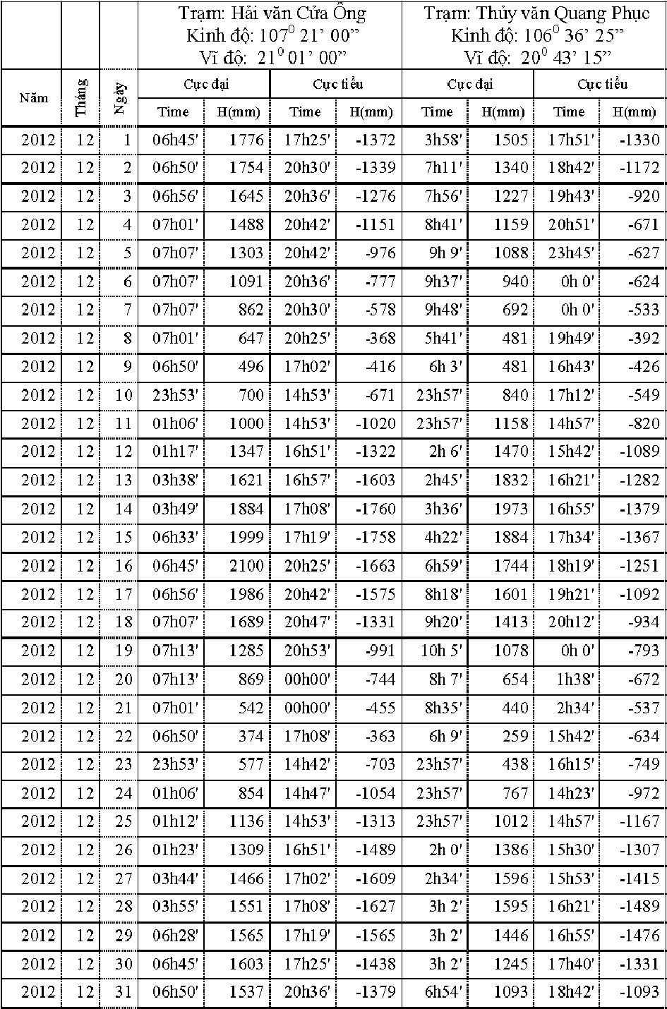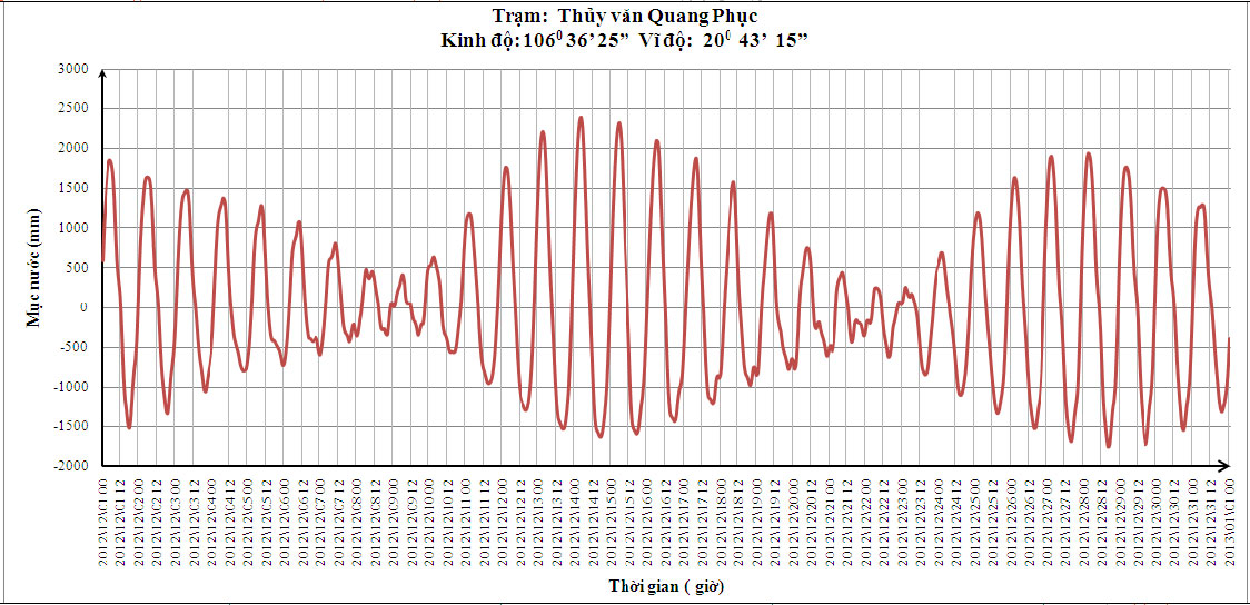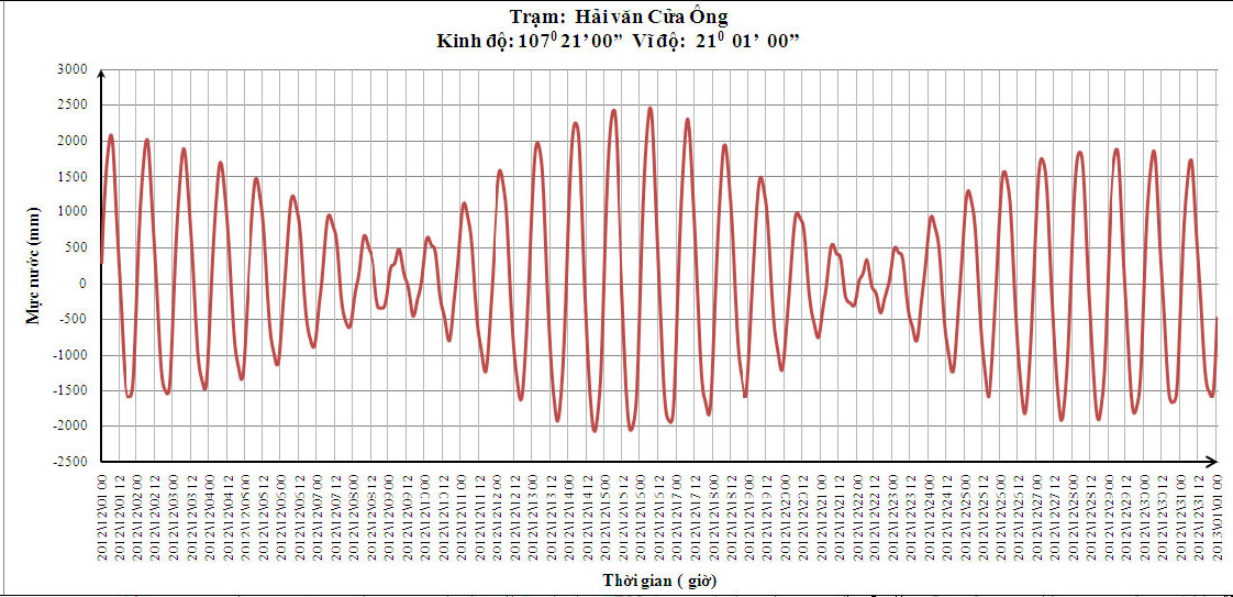 Biểu đồ thủy triều khu vực Hải Phòng - Quảng Ninh tháng 12/2012 |